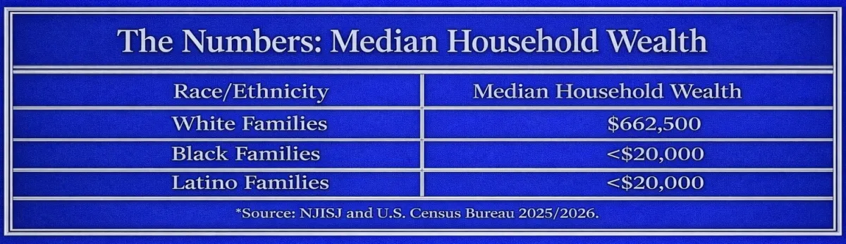 While the median wealth of white households exceeds $662,000, many Black and Latino families have less than $20,000 in household wealth.
